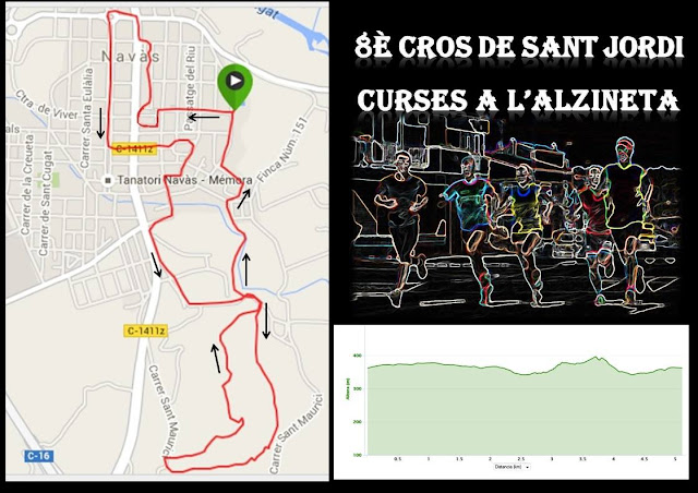 ... i 2,5 km per pista i corriol voltejant el Turó del Lladó fins la via i pujant fins la bandera + baixada i tornada al poble pel corriol dels horts + 0,5 km carrer Anselm Clavé i recta d'arribada o 2ª i 3ª volta igual que l'anterior/s.